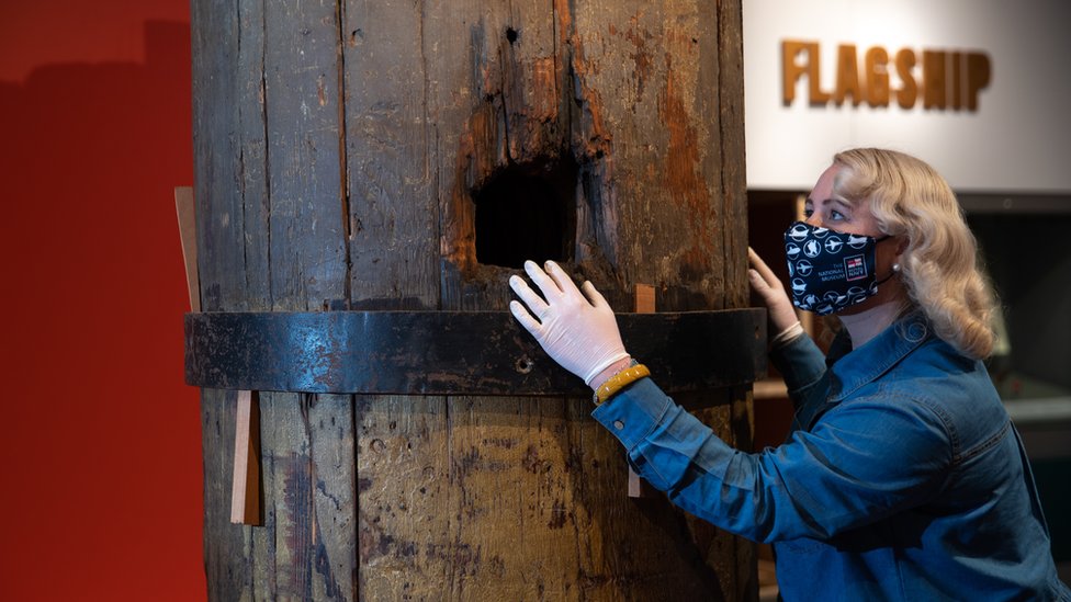 Hms Victory Cannonball Struck Mast Goes On Display Bbc News